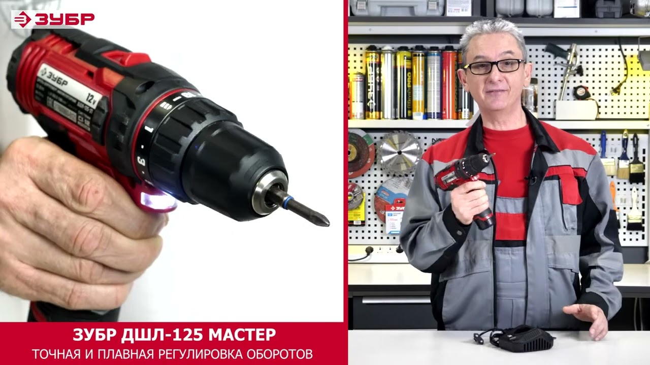 Аккумуляторная дрель шуруповерт ЗУБР ДШЛ125720p